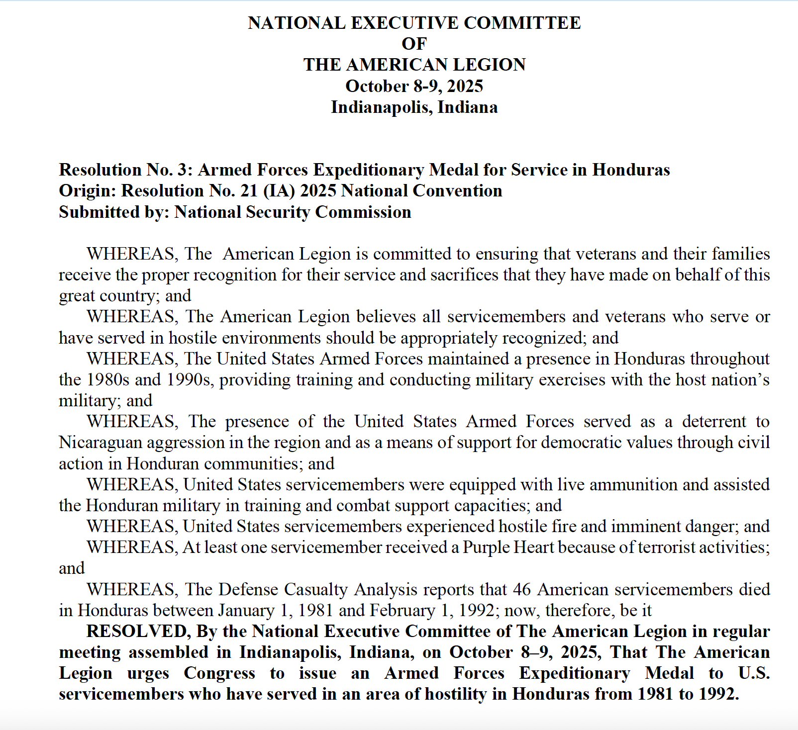 American Legion Res. #3 Honduras AFEM
